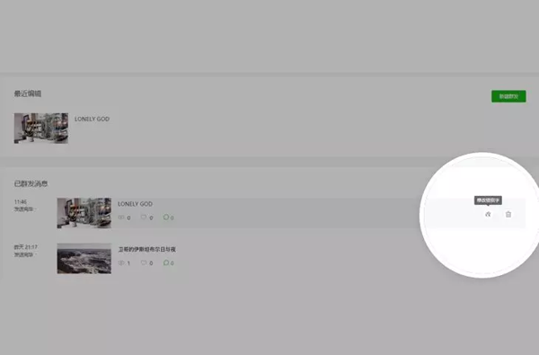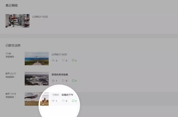 3、修改完成,在首頁(yè)已群發(fā)列表,可以看到文章?tīng)顟B(tài)變更為“已修改”。用戶訪問(wèn)文章將看到已更新的內(nèi)容。文章底部將顯示修改時(shí)刻。