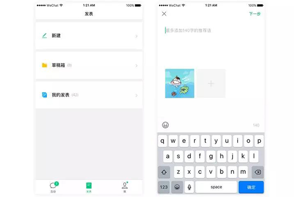 1. 可以在手機上編輯并發(fā)表圖文、圖片和文字消息。編輯圖文消息時可以添加圖片和音樂。