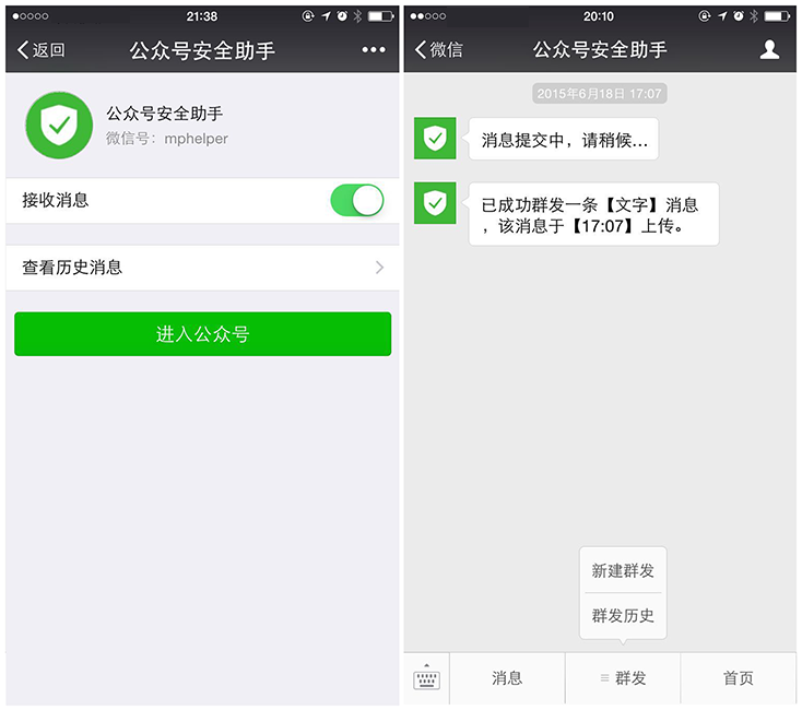 微信公眾賬號(hào)又推送了一條重要消息,微信公共平臺(tái)的手機(jī)版開始公測(cè),你可以在“公眾號(hào)安全助手”(mphelper)上管理公眾號(hào)。登陸后用戶將能看到自己賬號(hào)每天的粉絲數(shù)量變化以及總量,具體詳細(xì)的功能介紹都是有哪些?