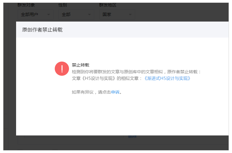 4. 原創(chuàng)文章群發(fā)后將無(wú)法修改轉(zhuǎn)載類型設(shè)置。