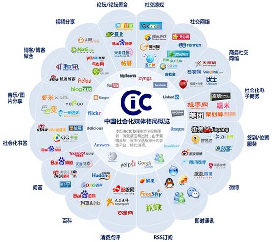 以下是中國社會(huì)化媒體&溝通的大致格局: