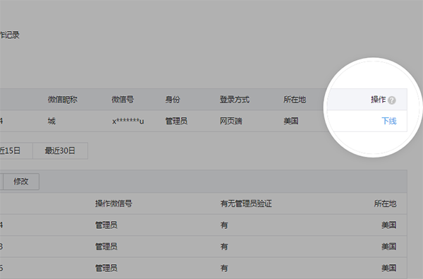 為使運(yùn)營者更方便地對(duì)公眾號(hào)進(jìn)行管理,安全中心增加了短期運(yùn)營者及踢下線功能。