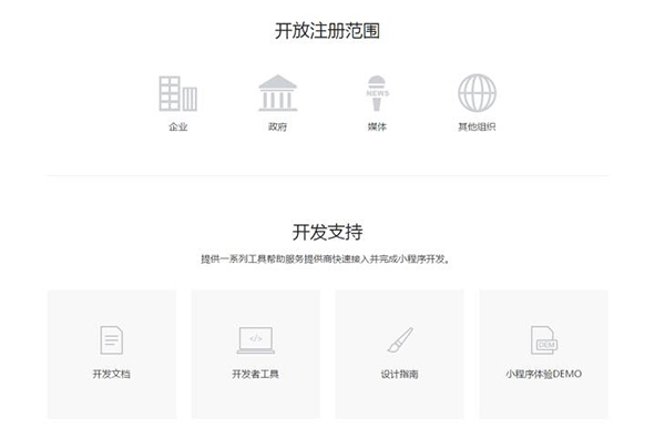 2、開發(fā)支持:提供一系列工具幫助開發(fā)者快速接入并完成小程序開發(fā);