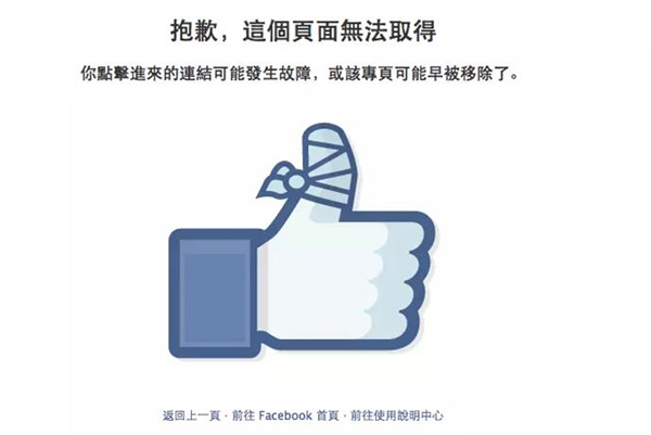 Facebook是美國(guó)的一個(gè)社交網(wǎng)絡(luò)服務(wù)網(wǎng)站,總部位于美國(guó)加利福尼亞州帕拉阿圖,創(chuàng)立于2004年2月4日,主要?jiǎng)?chuàng)始人馬克·扎克伯格。它的404頁面看起來似乎不怎么走心,這個(gè)設(shè)計(jì)來源于自家的「點(diǎn)贊」圖標(biāo)。