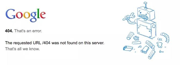 谷歌是一家位于美國(guó)的跨國(guó)科技企業(yè),成立于1998年9月4日,是國(guó)內(nèi)外公認(rèn)的全球最大的搜索引擎。Google在不同節(jié)日的Logo設(shè)計(jì)一直別出心裁,而它的404頁面也不例外。對(duì)于大家來說最熟悉的,可能就是這幅手繪風(fēng)格的機(jī)器人。
