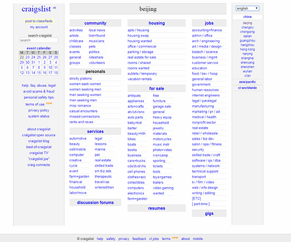網(wǎng)址:https://beijing.craigslist.com.cn/?lang=en&cc=us