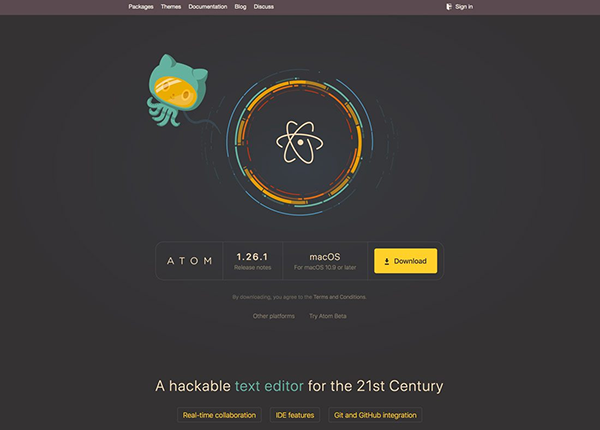 因?yàn)檫@樣的表達(dá)方式更加清楚,用戶也可以一目了然,明白點(diǎn)擊之后會(huì)發(fā)生什么,至于其他微文案,也盡量斟酌它們的表述方式,怎么才能更加有利于用戶。注意看Atom上面這個(gè)頁(yè)面是如何設(shè)計(jì)下載按鈕的,微文案和色彩的搭配,視覺(jué)效果非常突出,是一個(gè)非常優(yōu)秀的CTA按鈕,值得設(shè)計(jì)師借鑒哦!