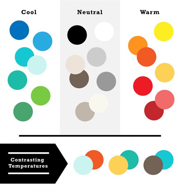 配色同樣最容易被感知到的設(shè)計元素,色彩的色相、明暗、飽和度上的差異,都可以制造足夠的對比度。同一種色相下,不同深淺的顏色之間的對比是非常明顯的,而我們最常見的就是在黑色背景上的白色文本和在白色背景上的黑色文本,這種對比度確保了內(nèi)容擁有基本的可讀性。當(dāng)然,在實(shí)際的色彩搭配當(dāng)中,對比度足夠明顯的配色方案會更加復(fù)雜,通常而言,下面的幾種搭配方式能夠給你對比明顯效果不錯的配色:
