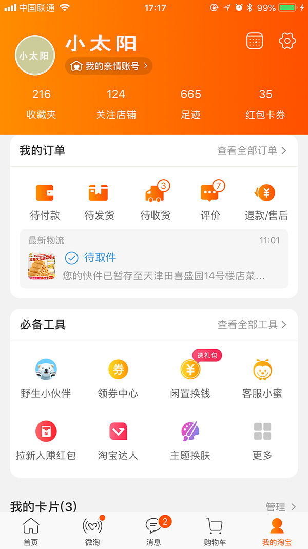 通過(guò)工具內(nèi)容顯性化設(shè)計(jì),可實(shí)現(xiàn)用戶所見(jiàn)即所得,幫助用戶快速明確的理解到工具所提供的核心功能和服務(wù),有效的減少用戶與工具所提供的核心服務(wù)之間的交互步驟和流程,讓用戶在當(dāng)前工具的內(nèi)容區(qū)完成與工具的核心交互。如:淘寶「我的淘寶」頁(yè)面就采用了大量?jī)?nèi)容顯性化的設(shè)計(jì),用戶在當(dāng)前頁(yè)面就能快速掌握到核心的信息。