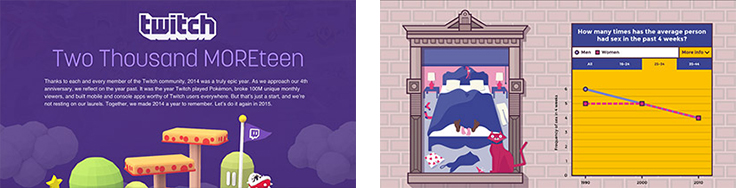 一、2015年大部分的網(wǎng)站首頁(yè)的背景都采用了一些背景清晰、寫(xiě)實(shí)的大圖,如照片和插圖。使用逼真、清晰的圖像從來(lái)不會(huì)過(guò)時(shí),但是流行與否則取決于使用的方法。背景清晰、寫(xiě)實(shí)的大圖現(xiàn)在是直接作為背景,插圖的色彩是非常重要的,色彩搭配是設(shè)計(jì)界永恒的話(huà)題,它決定了插圖的品質(zhì)。