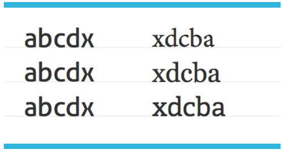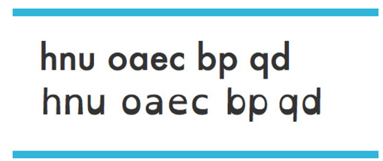 另外對(duì)于有閱讀障礙的人來(lái)說(shuō),幾何形字體很難閱讀因?yàn)閺慕Y(jié)構(gòu)和形狀上來(lái)說(shuō)都是很相似的。p鏡像過(guò)來(lái)看就是q,n反過(guò)來(lái)看起來(lái)就像u。這里的意思不是說(shuō)我們要馬上把它換成專(zhuān)門(mén)的字體,但是能意識(shí)到這種問(wèn)題可以反映設(shè)計(jì)師的讀寫(xiě)能力。