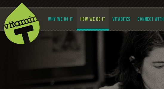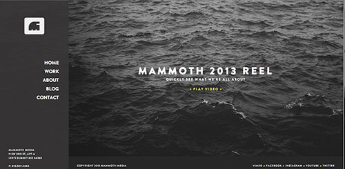 2、美妙的暗色首頁完美運(yùn)用了背景與前景的對比。其左上角無縫貼合的漢堡按鈕與logo和文字完美回應(yīng),以美妙的方式呈現(xiàn)出了一副以圖片為核心的漂亮導(dǎo)航欄。