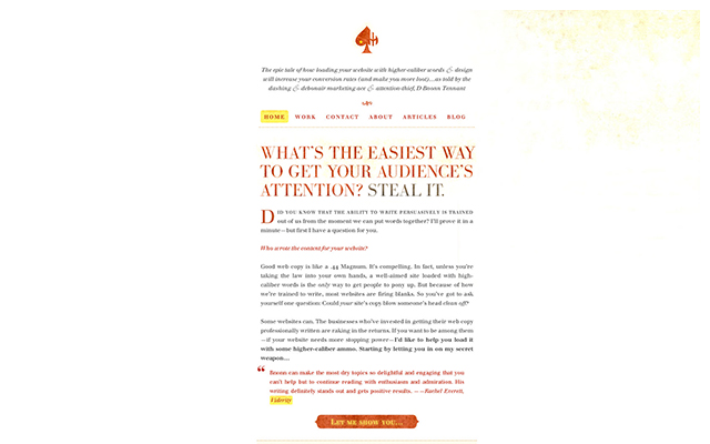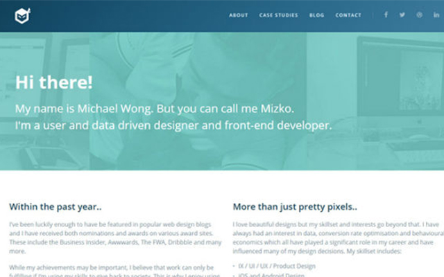 案例二:標(biāo)題文本“Hi there”成為該頁(yè)面的焦點(diǎn),因?yàn)椴粌H它的字號(hào)最大,并且周邊留白優(yōu)勢(shì)最多的,所以人們最先看到的就是它。