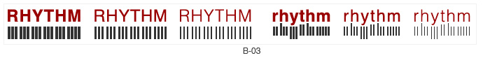 單行文字排版的橫向韻律:根據(jù)字體的粗細設(shè)定節(jié)點的粗細和排布疏密,就能產(chǎn)生輕重緩急高低錯落的節(jié)奏感和韻律感,如圖(B-03)。
