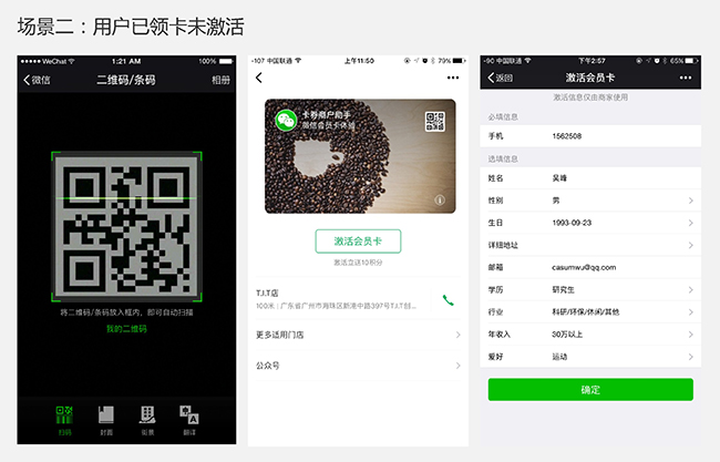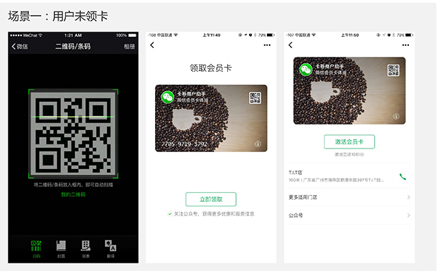 新版會(huì)員卡將多種功能集合在一個(gè)二維碼上:未領(lǐng)卡用戶掃碼后,領(lǐng)取頁面將默認(rèn)勾選關(guān)注公眾號(hào)選項(xiàng),用戶點(diǎn)擊立即領(lǐng)取后,將在領(lǐng)卡同時(shí)關(guān)注商家公眾號(hào);領(lǐng)卡未激活用戶掃碼后引導(dǎo)激活;已領(lǐng)卡并激活的會(huì)員用戶掃碼可直達(dá)卡面,進(jìn)行支付、查看積分等商家設(shè)置的操作。