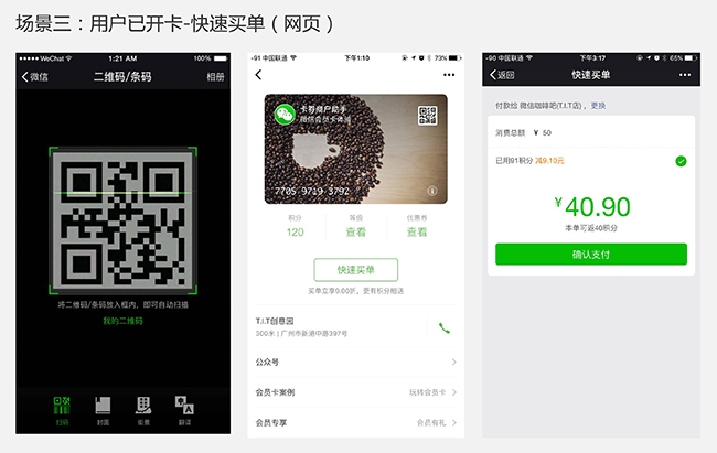 2.調(diào)起微信支付:商家可配置在卡內(nèi)調(diào)起微信支付,目前已支持調(diào)起網(wǎng)頁支付,在即將發(fā)布的新版本里,將支持調(diào)起刷卡支付,實(shí)現(xiàn)消費(fèi)閉環(huán)。