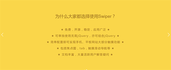 Swiper是一款免費(fèi)、輕量級(jí)的移動(dòng)設(shè)備觸控滑塊的js框架,使用硬件加速過(guò)渡(如果該設(shè)備支持的話)。主要使用于移動(dòng)端的網(wǎng)站 。其實(shí)類似這樣的滑動(dòng)插件的效果庫(kù)非常多,但像他這樣,文檔能做的那么專注的就很少鳥。所以推薦推薦哦!