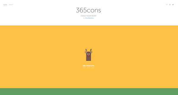 365cons 是Amy Devereux 所制作的每日更新的“圖標(biāo)日記”。該網(wǎng)站集聚很多的與眾不同的圖標(biāo)設(shè)計(jì),這些圖標(biāo)被設(shè)計(jì)成不同的樣式,不同的風(fēng)格,從這些設(shè)計(jì)作品中不難看出作者的靈感來(lái)源是相當(dāng)不錯(cuò)的。