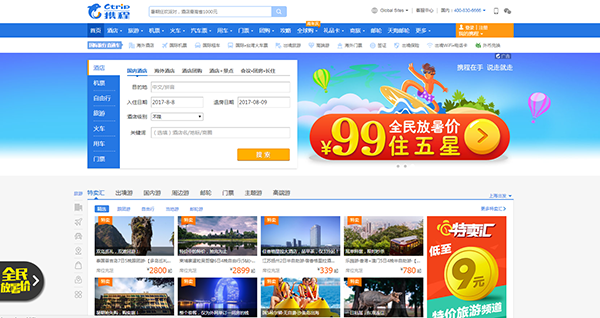 藍(lán)色無(wú)形之中給予了人們一種安全感,這也是為什么很多的旅游行業(yè)的app和網(wǎng)站采用藍(lán)色作為UI設(shè)計(jì)的主要原因,它隱隱傳遞出可靠,信任的感覺(jué),而這無(wú)疑也是旅游類(lèi)應(yīng)用和網(wǎng)站的最佳選擇,如目前深的大眾親睞的攜程旅游網(wǎng),它的logo以及網(wǎng)站整體的主色調(diào)采用的都是藍(lán)色的設(shè)計(jì)。