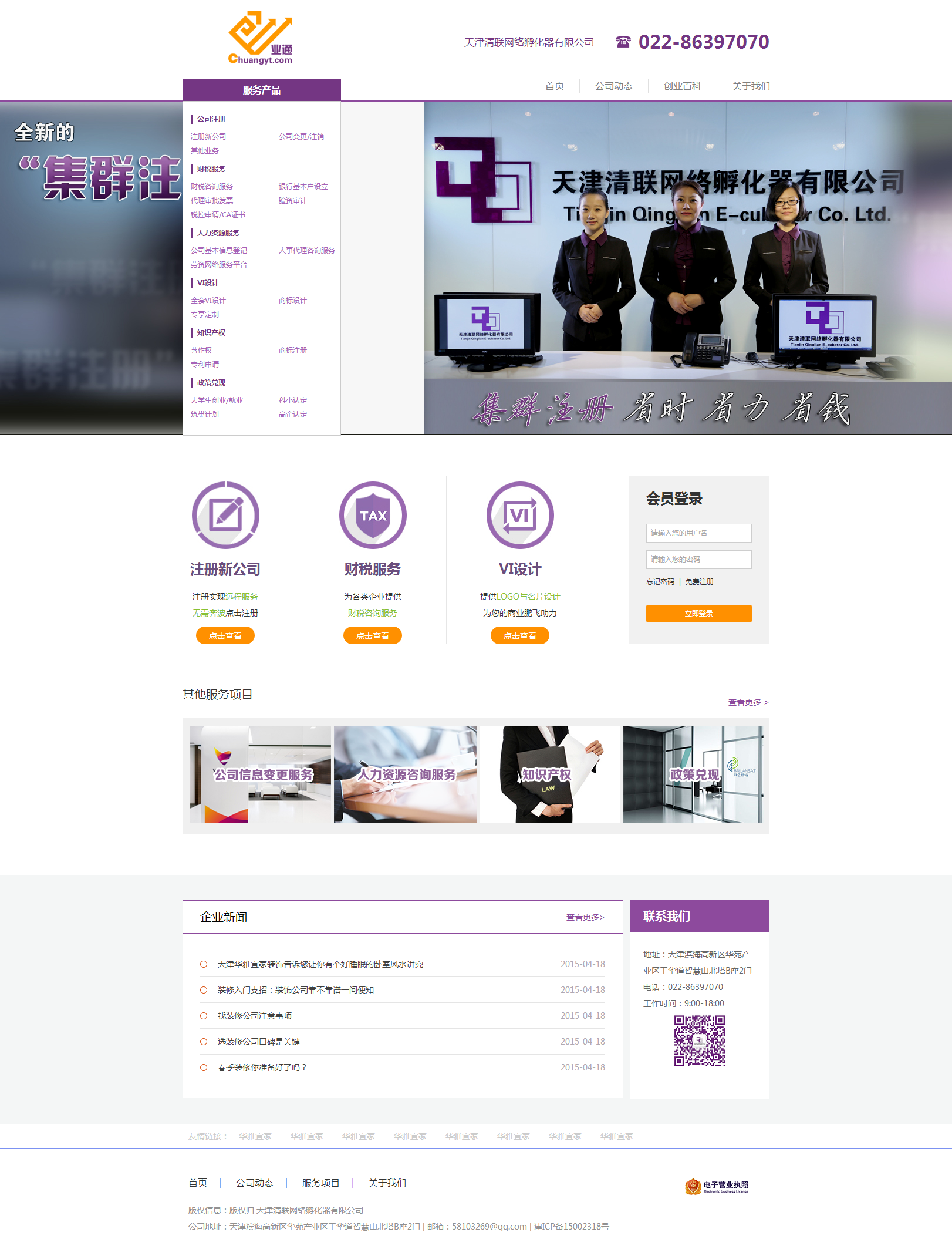 天津清聯(lián)網(wǎng)絡(luò)孵化器有限公司是一家基于互聯(lián)網(wǎng)為小微企業(yè)提供集群注冊(cè)、代理記賬、網(wǎng)站和logo設(shè)計(jì)以及代理商標(biāo)專利申請(qǐng)、為企業(yè)融資和孵化的互聯(lián)網(wǎng)服務(wù)型企業(yè)。公司位于天津華苑智慧山北塔11層。